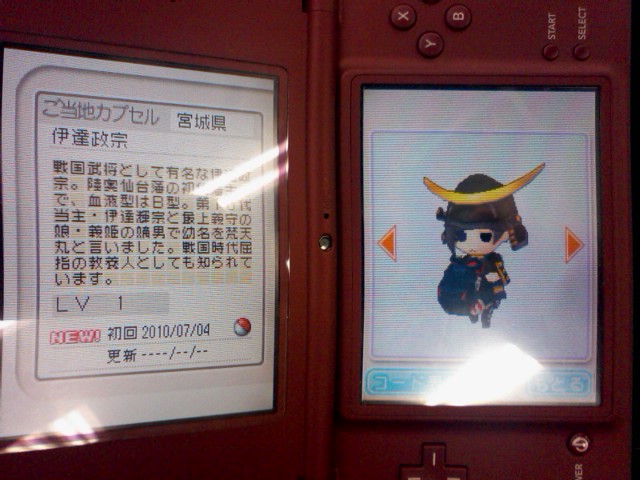 そしたら画像の通り、宮城のレア『伊達政宗リンコ』が出た。
